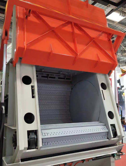 從斗式提升機流入的丸砂混合物,由螺旋送至分選區上部,螺旋使其沿分離器在分選區全長范圍內均勻布料,構成好像瀑布一樣的丸砂流幕。一起,除塵風機經過分離器的風口抽風,運用重力風選,將流幕中的彈丸和型砂、金屬氧化皮碎片、破碎單丸、粉塵有用分離,然后經底部篩網的二次過濾后流入料倉,貯存并進入下一步的循環運用。