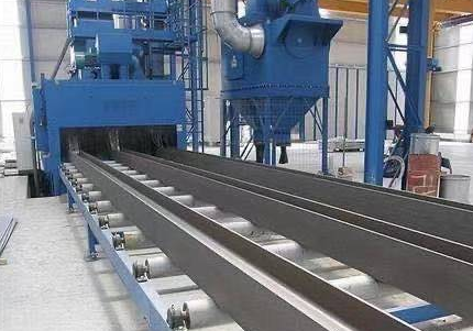 通過式拋丸機(jī),鋼結(jié)構(gòu)或鋼材在清洗過程中通過電控可調(diào)速輸送輥送入清洗機(jī)房的拋射區(qū)域,并且整個表面受到強(qiáng)烈的沖擊。來自不同坐標(biāo)方向的致密射彈。摩擦,使其上的水垢,銹層及其污垢迅速脫落,鋼的表面獲得具有粗糙度的光滑表面,并且工件在入口和出口的兩側(cè)裝載和卸載。