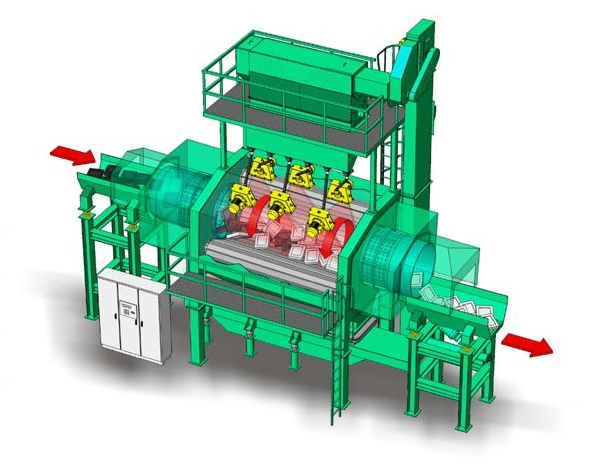 履帶式拋丸機是一種廣泛使用的拋丸機,使用高速旋轉的葉輪將射彈投射到腔室中的工件上進行清洗。該技術開發的新產品采用新型高效單盤噴砂機和假想輥,由橡膠帶環繞,使清洗后的工件輥均勻,減少碰撞。清洗效果好,工件可以主動排出。