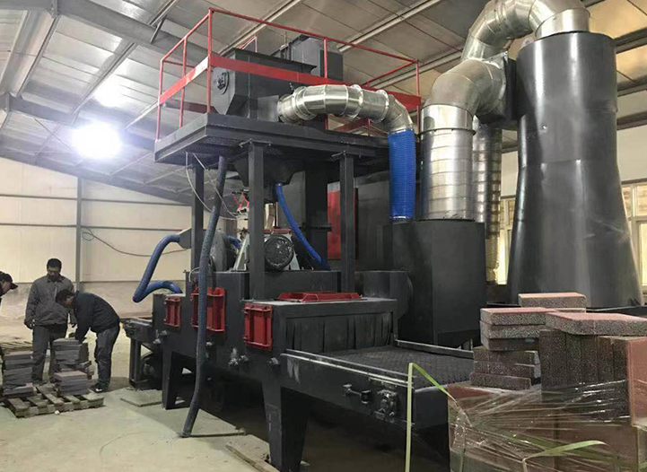 石材通過式拋丸機主要用于大理石、簡單的構(gòu)件、小型鑄件的表面清理,以去除工件表面的銹蝕、污物、氧化皮、鑄砂等,使工件起到除銹、去污、強化、清砂的作用,提高工件的抗疲勞強度,達到提高工件表面及內(nèi)在質(zhì)量的目的。主要由清理室、輥道輸送機、拋丸器、彈丸循環(huán)系統(tǒng)(含提升機、分離器、縱向螺旋輸送器和供丸管道)、除塵、清掃系統(tǒng)、電氣控制等部件組成。