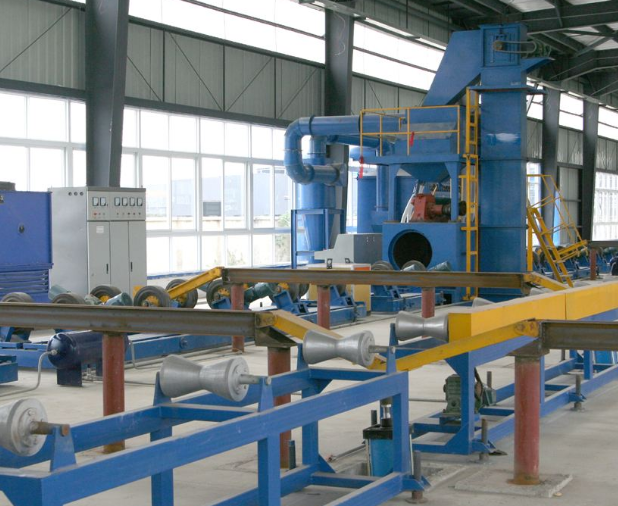 鋼管內(nèi)外壁拋丸清理機(jī)適用于大、中型鋼管的表面清理和強(qiáng)化。經(jīng)過清理后的鋼管呈現(xiàn)銀白色的金屬光澤,其表面抗拉、抗壓強(qiáng)度提高。本機(jī)為通過式,輥道連續(xù)輸送工件,邊移動邊旋轉(zhuǎn),不需人工上料,生產(chǎn)效率高,清理效果好。鋼管內(nèi)外壁專用拋丸清理機(jī)適用于鋼管及鋼管類產(chǎn)品的表面處理,去除其表面氧化皮,焊渣等雜物,呈現(xiàn)出金屬光澤,增加其表皮面積,以利于工件表面的噴涂及涂敷廣泛應(yīng)用于石油化工、鋼鐵、城市集中供熱、供排水等行業(yè)。