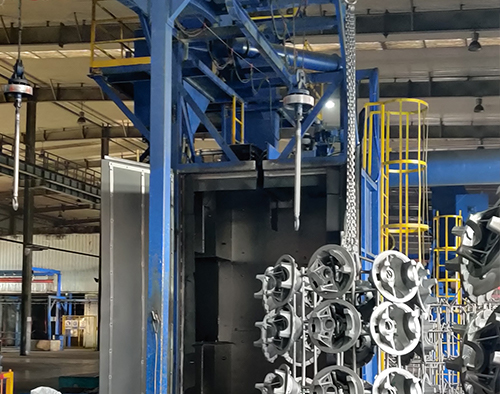 吊鉤式拋丸機分為單吊鉤和雙吊鉤,吊鉤式拋丸機由兩個吊鉤裝載工件交替進入拋丸清理室內。利用拋丸器將0.2~0.8的彈丸拋向工件的表面,使得工件的表面達到一定的粗糙度,讓工件變得美觀,或者改變工件的壓應力提高壽命。本機型廣泛應用于鑄造、建筑、化工、電機、機床等行業的中、小型鑄、鍛件的表面清理或強化處理。